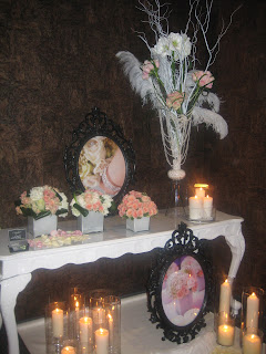 The fabulous Luluthia Flowers set up a beautiful setting adorned with feathers and fresh flowers. I couldn't help but fawn over them!!! Whimsical, yet chic, I can totally see myself dying to have table settings at my own wedding!!